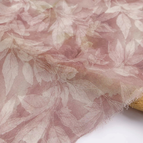 Nổi bán trong suốt màu xám hồng mực rửa pha trộn với lá in, mô phỏng lụa chiffon vải, váy khăn vải