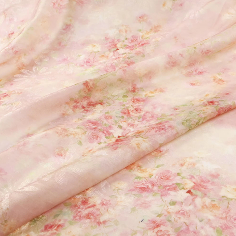 たるんだ光沢穏やかなピンクイエローダークパターンジャカード花ローズシルクアセテートサテン生地チャイナドレス生地