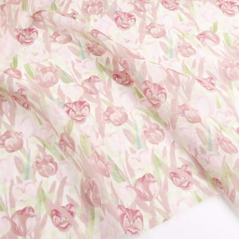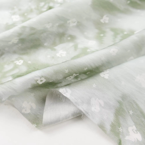 Микро-прозрачная, светло-зеленая полиэфирная ткань с цветочным принтом