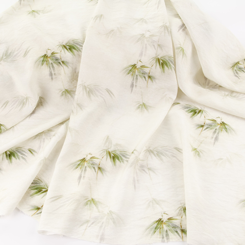 पतली लटकी हुई बेज प्राचीन बांस की पत्ती प्रिंट टेनेल नायलॉन के कपड़े चींगसम पोशाक वसंत और ग्रीष्मकालीन कपड़े