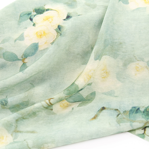 सूक्ष्म पारदर्शी त्वचा के अनुकूल हल्के हरे टाई डाई प्राचीन शैली पुष्प प्रिंट पॉलिएस्टर कपड़े चींगसम