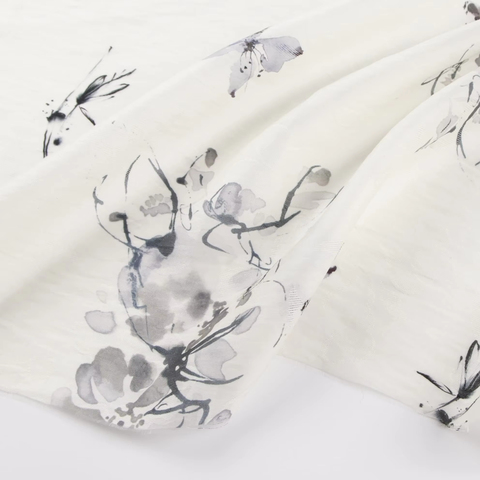 Полубпрозрачная бежевая основа для кожи с цветами, птицами, растительным принтом, ткань из полиэстера, рубашка, ткань для юбки Ципао
